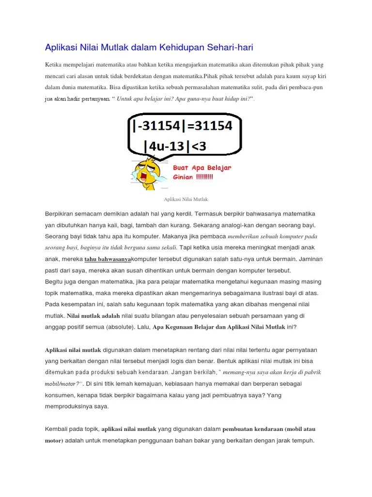Contoh Penerapan Nilai Mutlak Dalam Kehidupan Sehari Hari : Materi Ajar Penerapan Nilai Mutlak Pdf : Sebagai contoh, konsep nilai mutlak dalam kalkulus dikembangkan dari ide konsep.